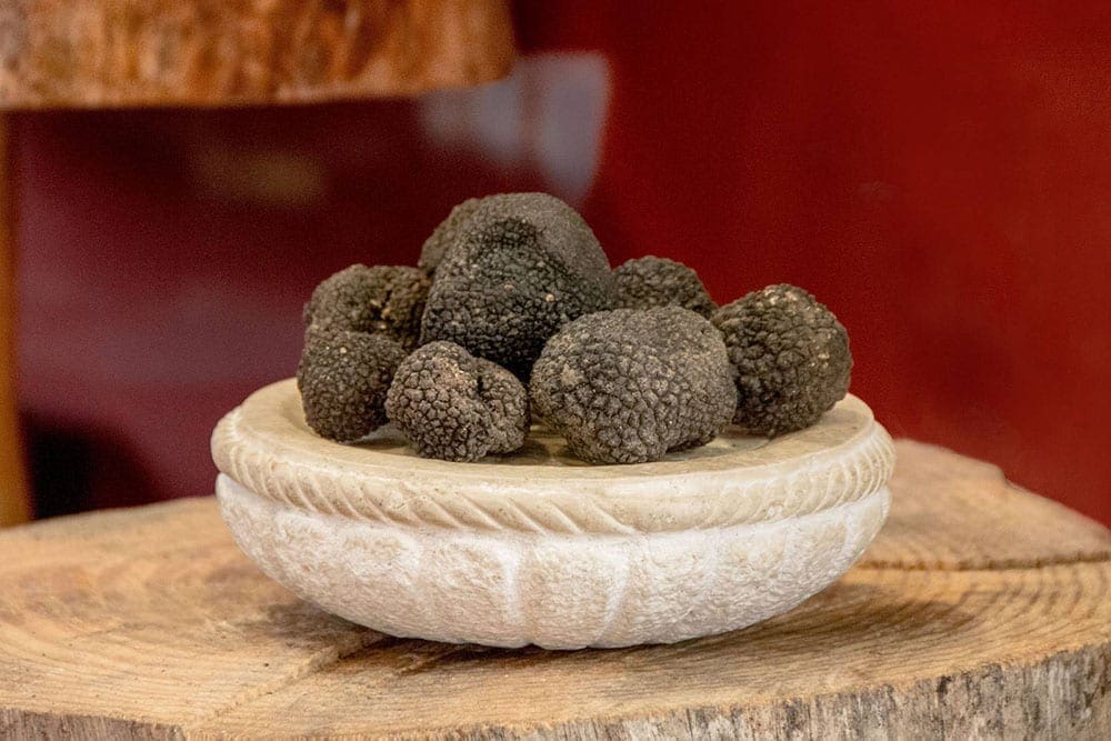 Il primo è un tartufo dall’aroma intenso e dalla colorazione nera anche internamente, venata appena da sottilissime striature bianche, con un sapore molto più avvolgente. E’ il vero e proprio tartufo nero per eccellenza, dal costo alto, ma considerato il vero e proprio re nero delle tavole per la sua prelibatessa. Generalmente lo si trova in pepite da piccola grammatura, dalla forma tondeggiante, ma non di rado nella zona di Norcia si possono raccogliere tartufi di medie dimensioni.